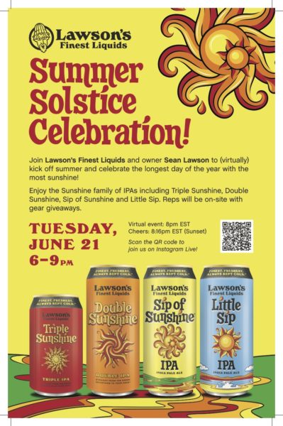 This year, we’re celebrating the sunniest day of the year — Summer Solstice! Our Sales Team is popping up all over our 9-state territory (VT, CT, MA, ME, NH, NJ, NY, PA, RI) with Sunshine events and beer to match. For the finale of the day, we’re going live on Instagram at 8PM with Sean Lawson for a sunset toast throughout the Northeast. More details to come soon on our Events page!
