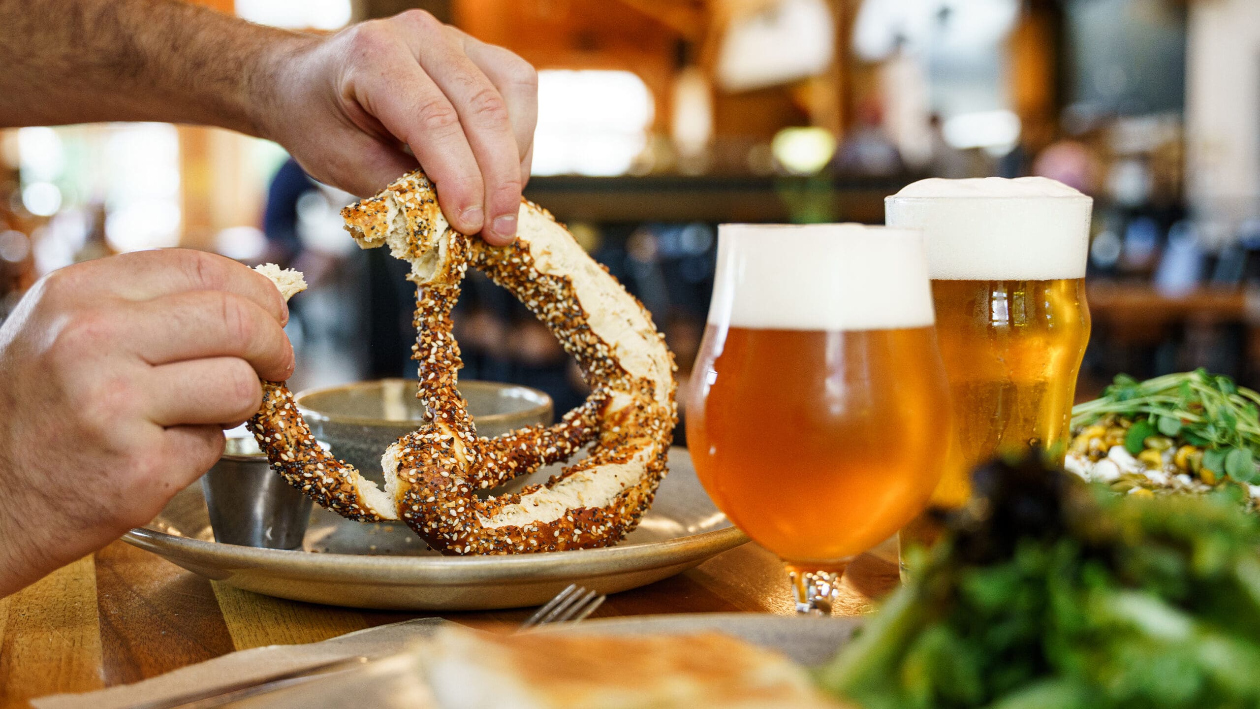 Classic salted or everything bagel seasoned pretzel with house-made Double IPA warm beer cheese.